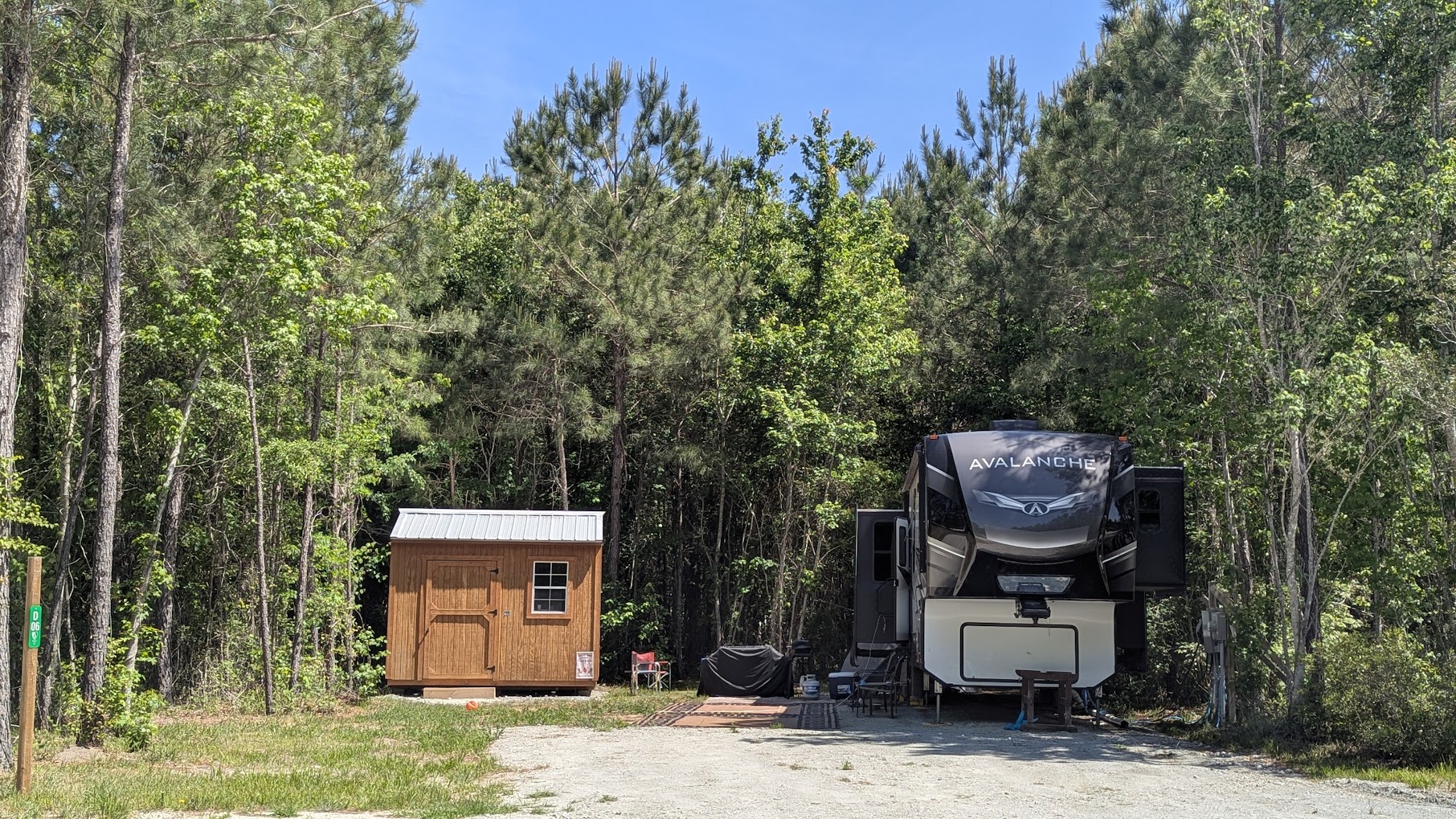 I cannot say enough about this location and the owners/managers! We had a house fire and was fortunate enough to reach out to Nature's Trace for help. They got us a tiny house ready in record time and made us feel at home. The privacy at this location is incredible... read more - nothing like other RV/Camp properties I have ever seen. When they are totally finished with this location, it will be one of the best RV Parks you have ever seen. Nature's Trace is heavily wooded, which provides shade, nature, and privacy. We had nightly visits from a big bunny and countless birds to watch. The tiny house was not tiny feeling at all. We had plenty of space and all the comforts of home. The mini-split ACs kept us chilly on the hottest of days. Oriental is close for sight-seeing, as is New Bern. However, you feel like you are "in the middle of nowhere" once you go beyond the property gates. It is the best of both worlds! Speaking of gates, the property is gated, so you feel even more protected within the property. Again, I cannot brag enough about this park, the owners, and the potential it has!